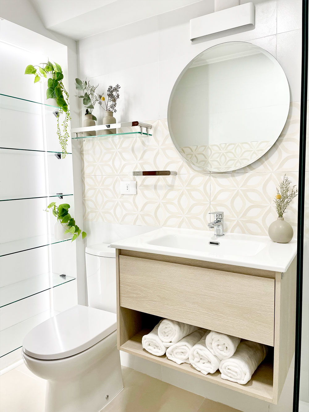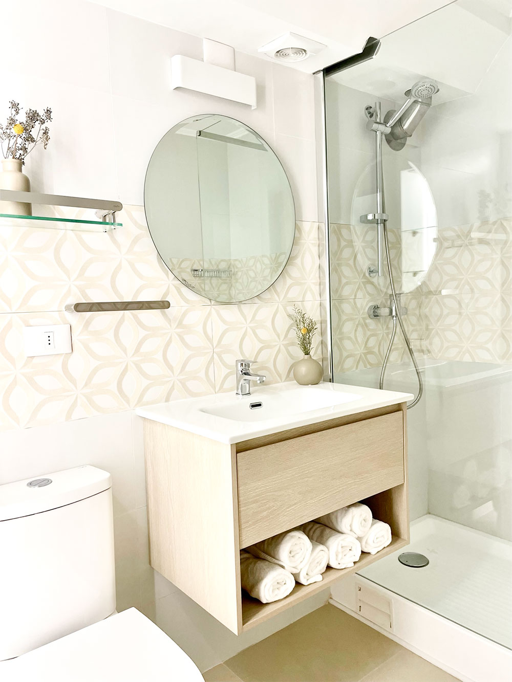 Aunque a simple vista pueda parecer un diseño sencillo, cada proyecto, incluyendo este, presenta desafíos únicos en términos de crear espacios habitables y bien ventilados. Por lo tanto, este baño no es solo un reflejo de la serenidad y la belleza estética, sino también de nuestro compromiso con la funcionalidad y la comodidad.