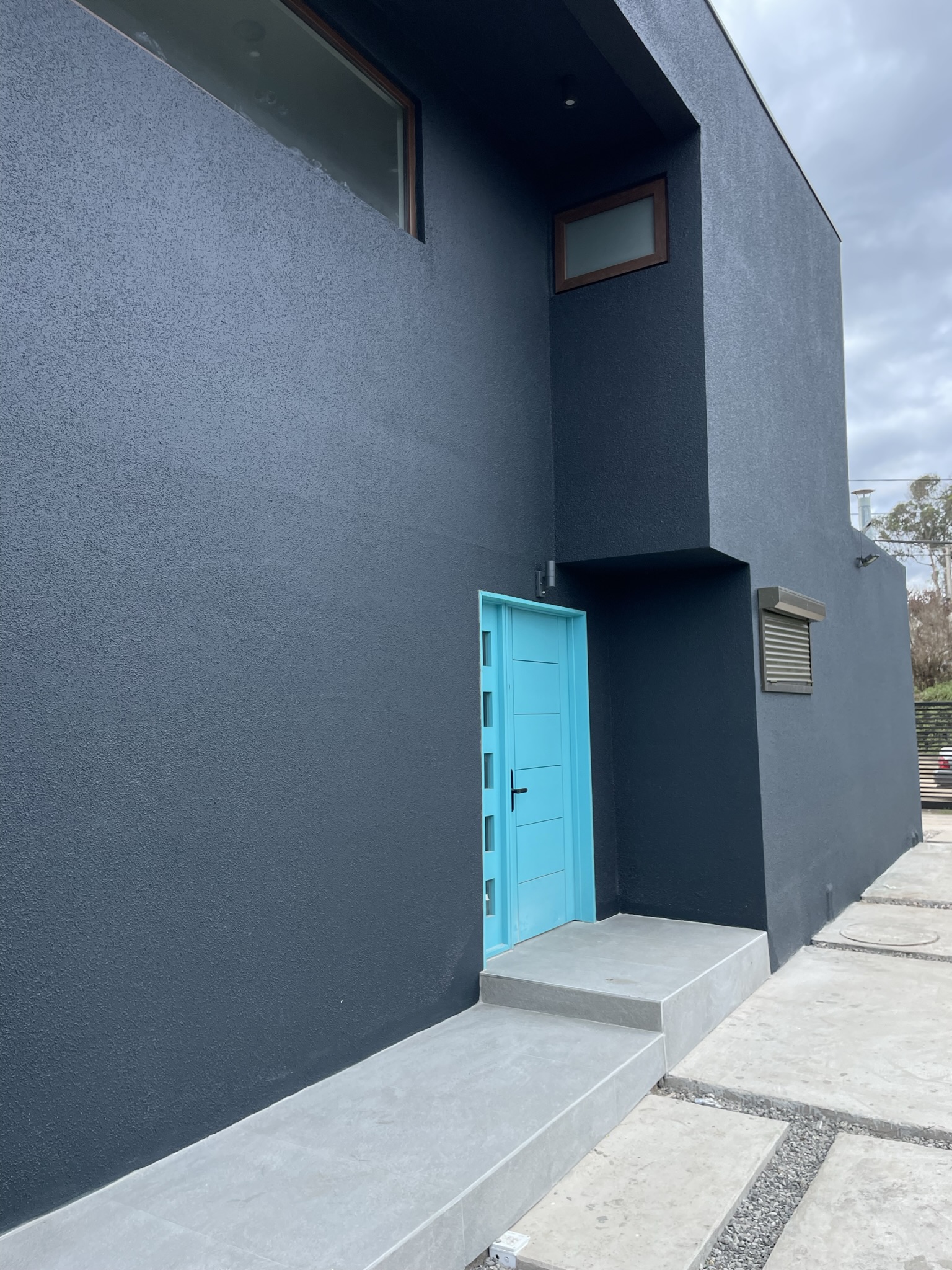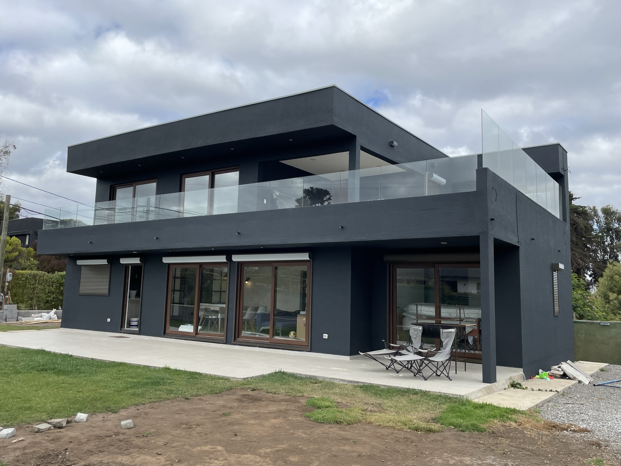 La casa se ubica en un terreno esquina, en la zona más consolidada de la comuna de Santo Domingo. El requerimiento de sus dueños fue contar con dos importantes terrazas: una en 1er piso, que cuenta con todo el largo de la construcción, y otra en 2do piso, que buscan las vistas lejanas al mar.