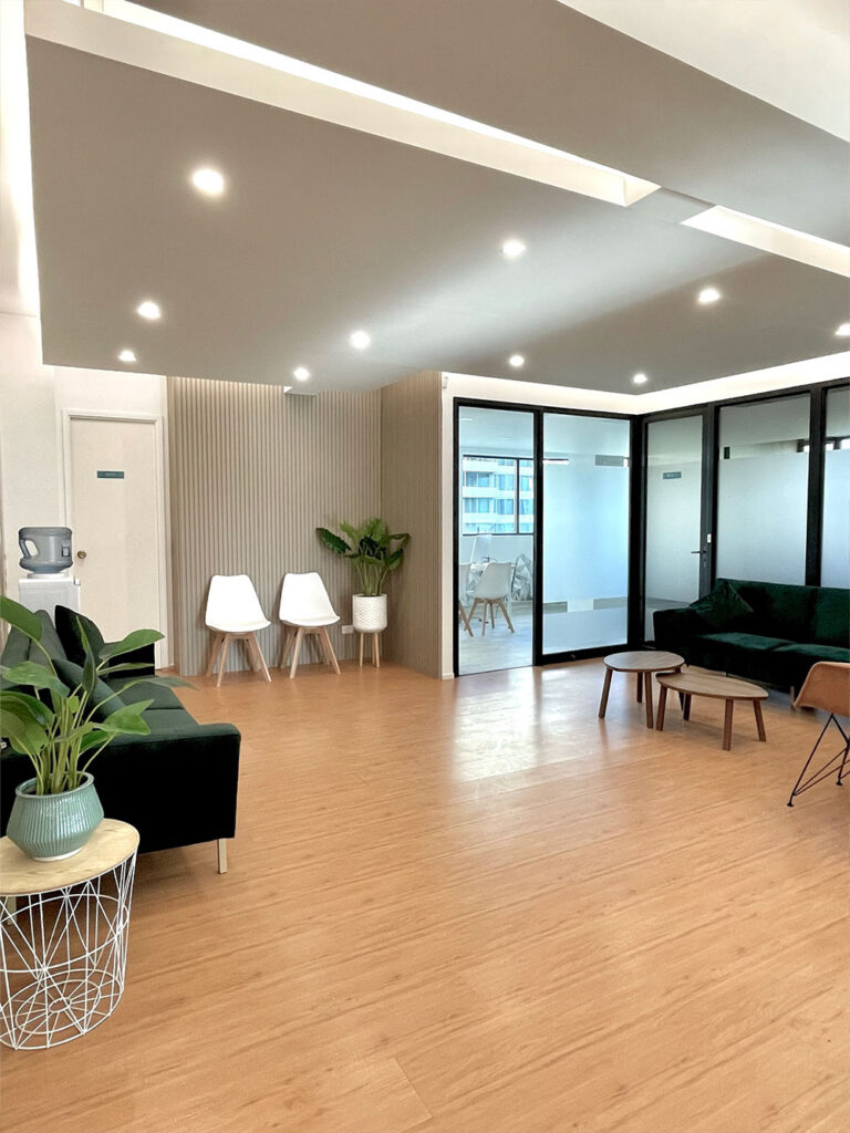Como en todos los proyectos comerciales que llevamos a cabo, me inspira idear soluciones sencillas y prácticas. En este caso, decidimos potenciar la altura en las áreas comunes. Aunque solo pudimos aumentar la altura unos pocos centímetros, al despejar el perímetro del techo, conseguimos generar una sensación de mayor amplitud.