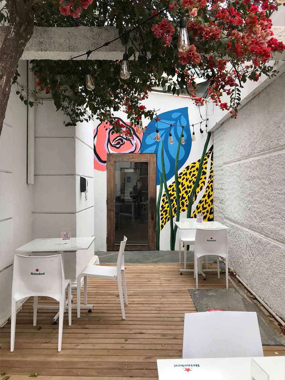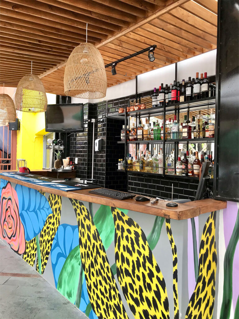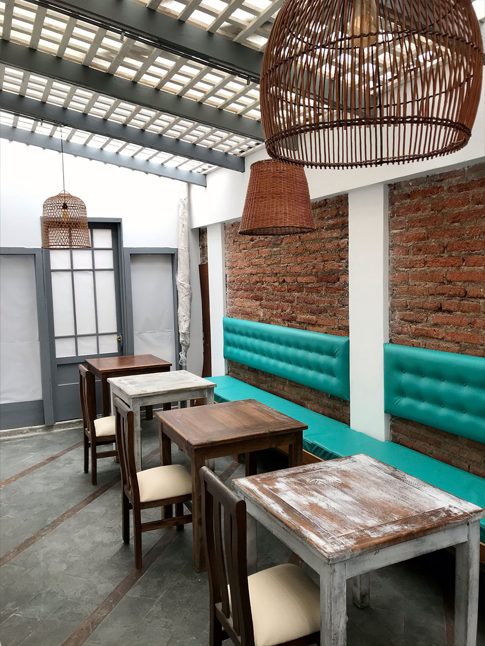 Decidimos resaltar un bar exterior, a pesar de los desafíos de seguridad que esto conlleva. Optamos por reciclar muchos de los acabados ya existentes, realzamos otros y agregamos fibras naturales en la iluminación. Los muros, pintados con colores vibrantes, añaden un toque dinámico a este espacio. Con todo esto, hemos conseguido que este bar se convierta en una parada obligatoria en Viña del Mar.